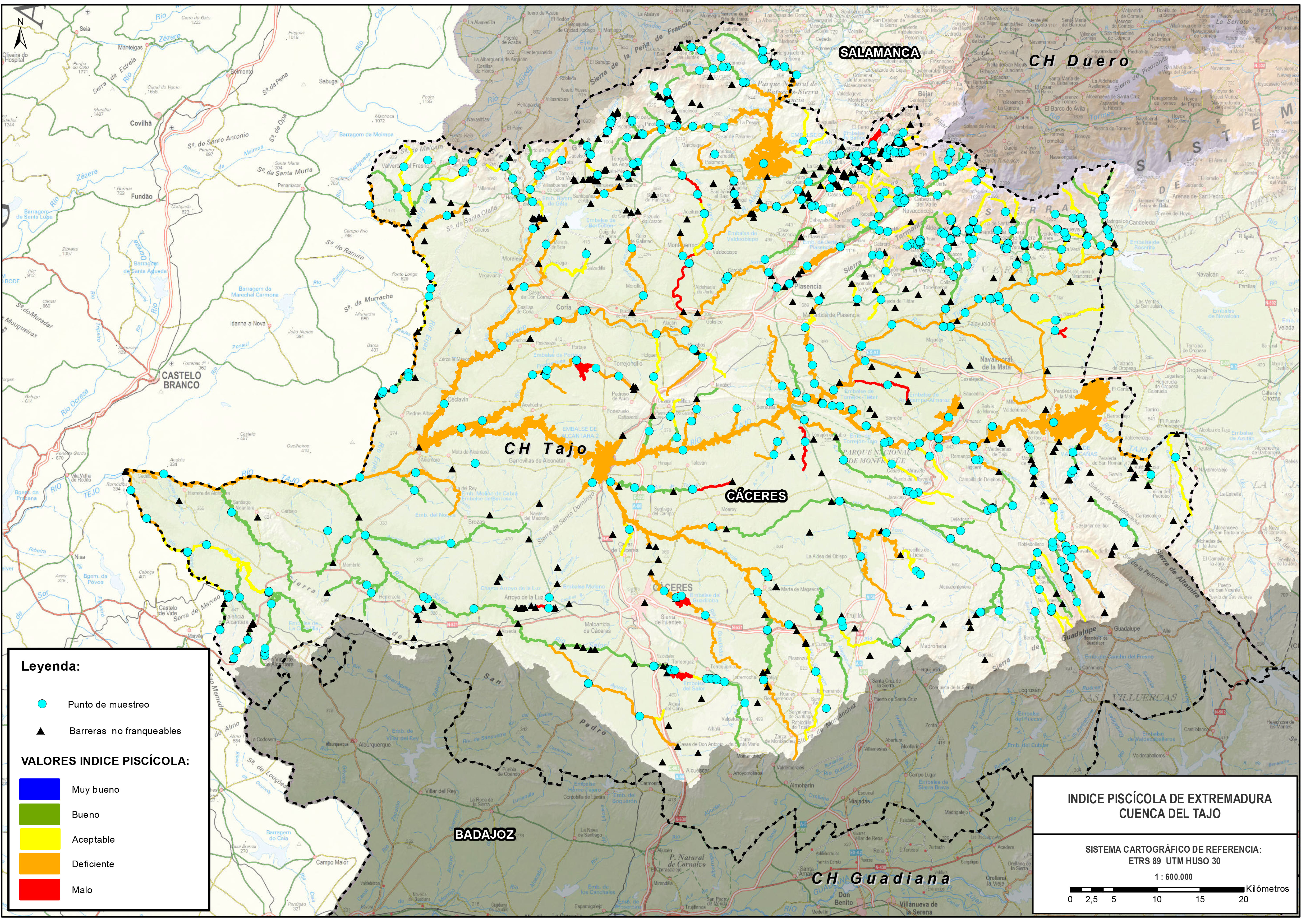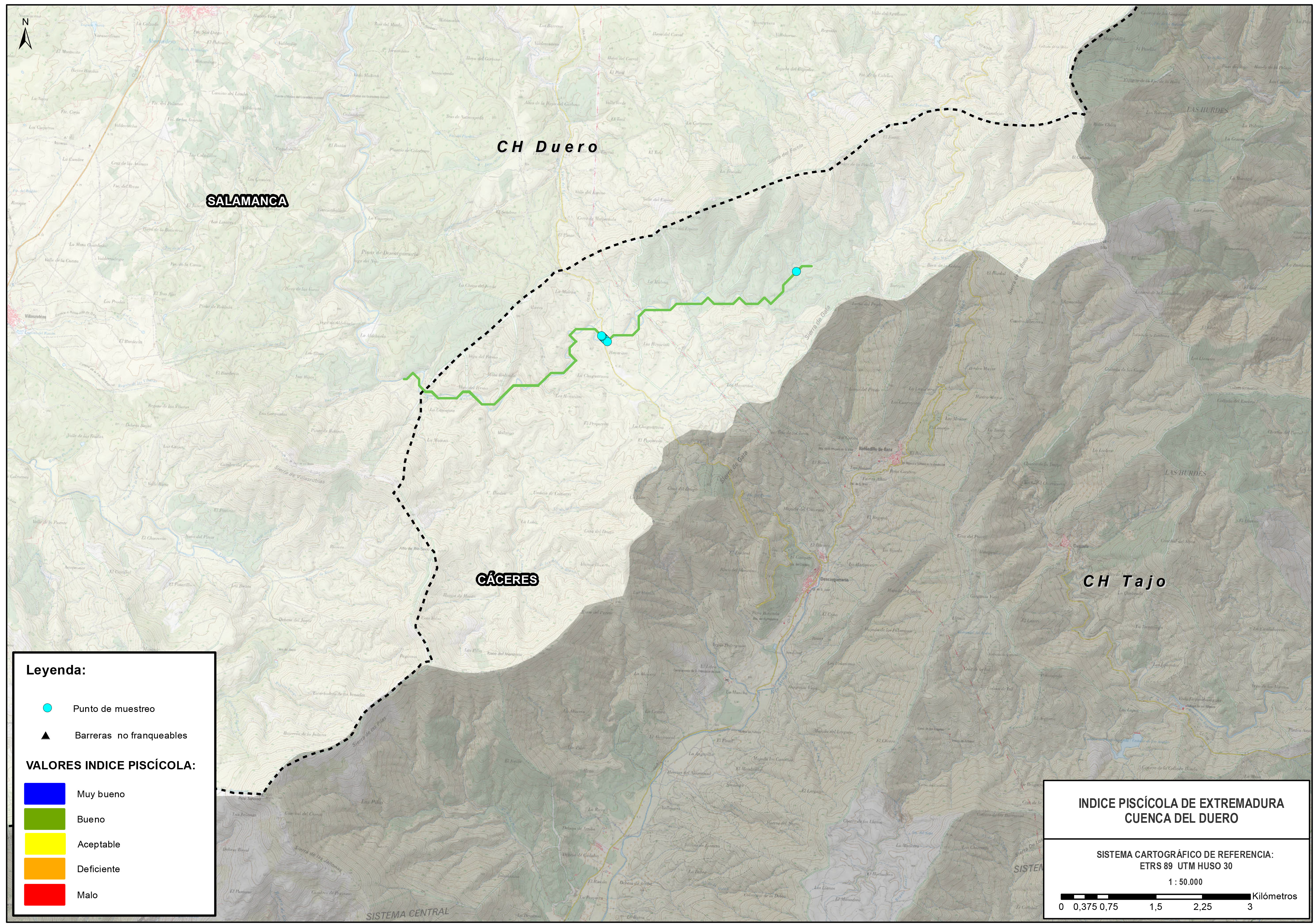 1. Cartografía con el ÍNDICE DE CALIDAD PISCÍCOLA.