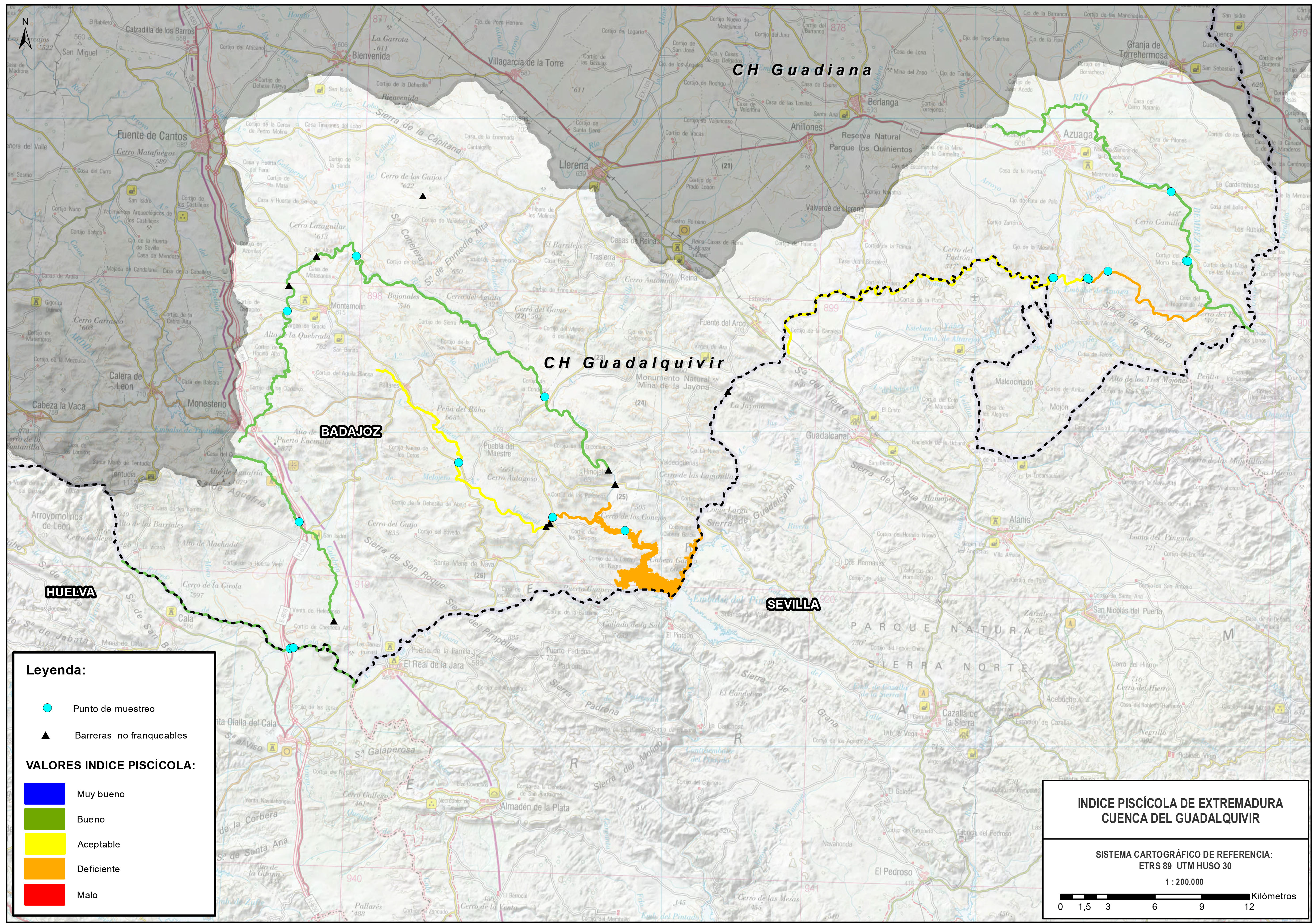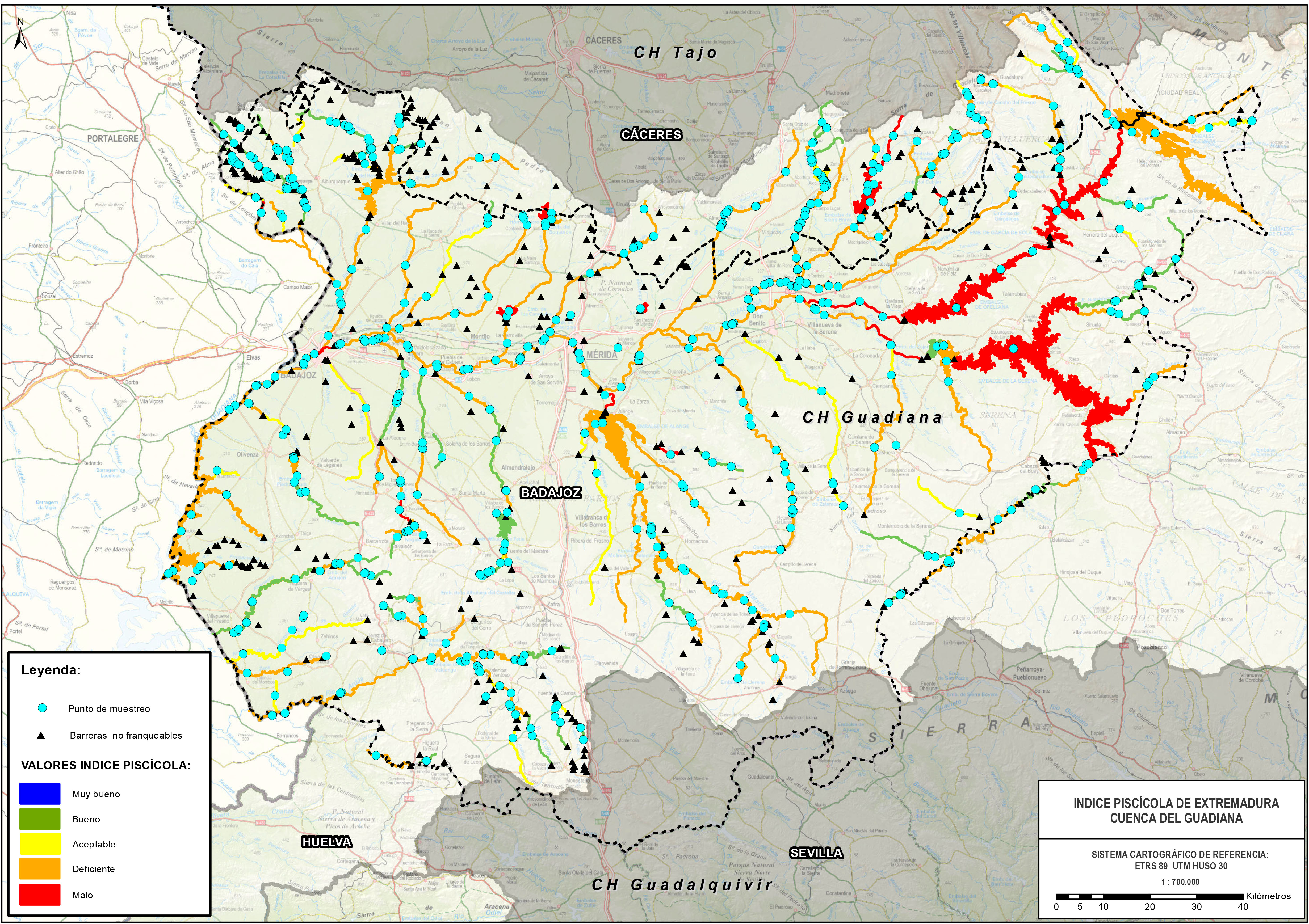 1. Cartografía con el ÍNDICE DE CALIDAD PISCÍCOLA:
