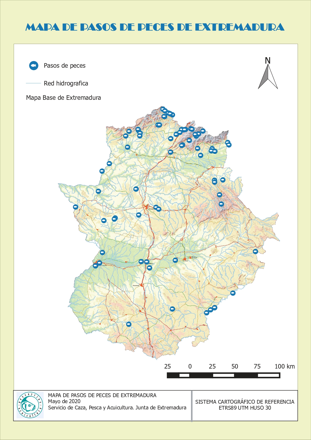 En el visor geográfico puede consultar de forma sencilla e intuitiva información relevante sobre la Orden General de Vedas de Extremadura y los Cotos de Pesca existentes en la comunidad de Extremadura. De cada Coto de Pesca se puede obtener una ficha en PDF en la que se recogen los datos relevantes para el pescador del Plan de Gestión del coto.